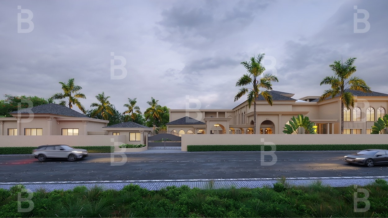 A luxurious classical bungalow centered around a serene courtyard, blending